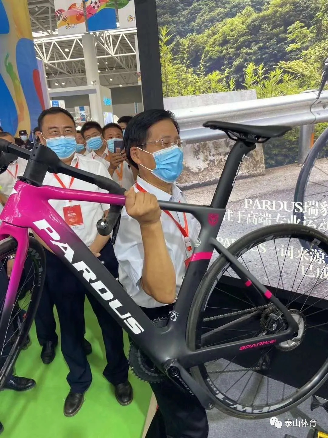 随后,山东省副省长孙继业一行在泰山集团常务副总裁卞国峰的陪同下来到世界杯官方网页版所在场馆进行详细考察,对于泰山瑞豹碳纤维自行车、世界杯官方网页版工程等产品与项目进行深入了解。期间,孙继业副省长饶有兴致的对于泰山瑞豹进行详细了解,特别关注获得"中国优秀工业设计奖金奖"的泰山瑞豹全碳变速互换计时车产品的具体情况,并亲自单手提起具有奥运赛场征战经验的碳纤维自行车。他表示:"山东省委省政府将积极推动体育产业列入我省的支柱产业,鼓励企业制定长期发展战略规划,通过打造体育产业龙头企业,形成一个迅速爆发的体育产业生态。期待泰山集团充分发挥自身国际资源、科技创新、标准制定等核心优势,不断做大做强,让山东体育产业的优势地位凸显的淋漓尽致,形成山东体育产业集群。"