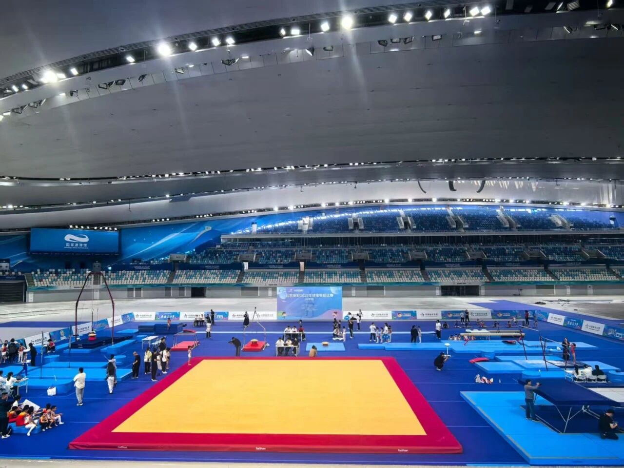 在国家速滑馆“冰丝带”,体操等级比赛汇聚了520名不同年龄段的运动员同台竞技。作为助力体操人才梯队建设的重要赛事,这场比赛为各年龄段选手搭建了一个专业的竞技与考级平台,更通过规范赛事体系发掘与储备体操后备力量。